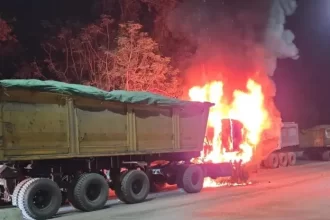 कोरबा में कोयले से लदी गाड़ी में लगी आग, स्टेडियम रोड पर मची अफरा-तफरी