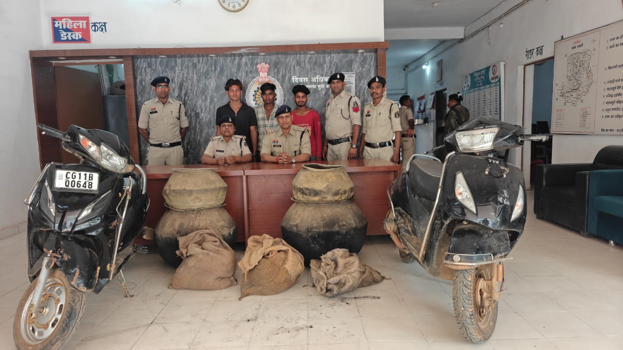 सक्ती में अवैध महुआ शराब पर पुलिस की बड़ी कार्रवाई, 50 लीटर शराब के साथ तीन आरोपी गिरफ्तार