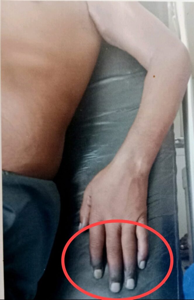 पुरुषोत्तम लाल सोनी ने बताया कि उन्होंने डॉक्टर और नर्स को अपनी तकलीफ बताई, लेकिन उन्होंने अनदेखा किया। इसके बाद उनके हाथ में इंफेक्शन हो गया और उन्हें अखिल भारतीय आयुर्विज्ञान संस्थान रायपुर में भर्ती कराना पड़ा, जहां उनका ऑपरेशन कर हाथ काटना पड़ा।