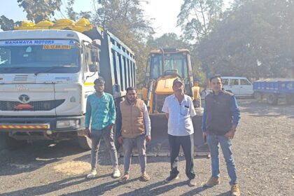 बम्हनीडीह में अवैध रेत उत्खनन, भंडारण पर कार्रवाई, जेसीबी व हाईवा जब्त