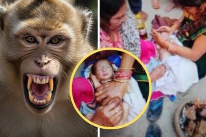 बंदर ने मां की गोद से छीनी 15 दिन की बच्ची, कुएं में फेंका—डायपर और नर्स की सूझबूझ से बची मासूम की जान