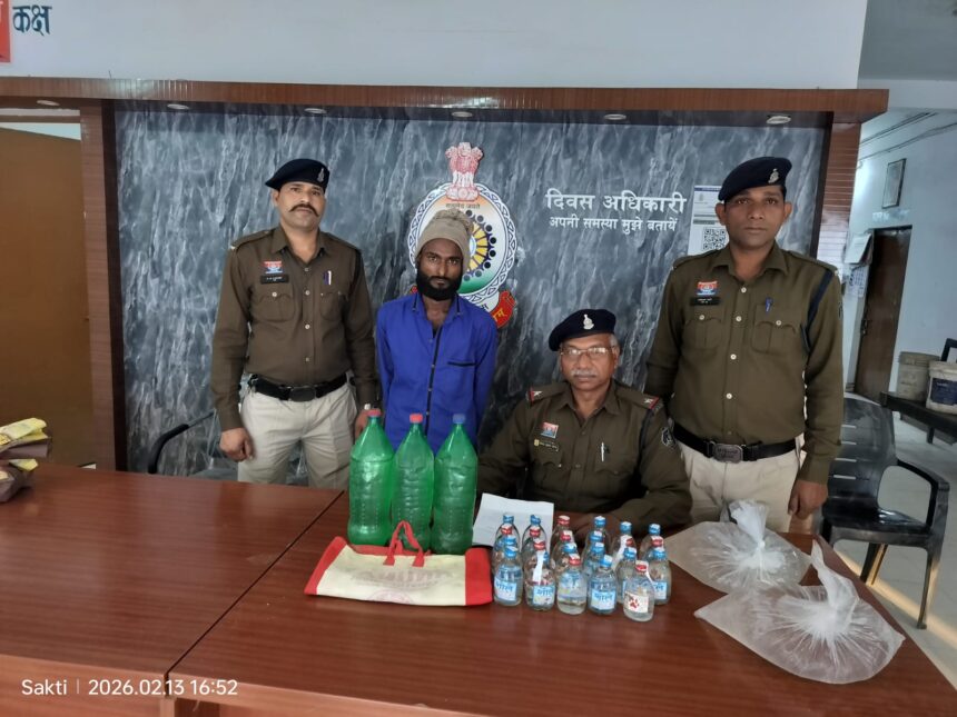 सक्ती में अवैध शराब के साथ आरोपी गिरफ्तार, 14 लीटर महुआ व 14 बोतल देशी प्लेन शराब जब्त