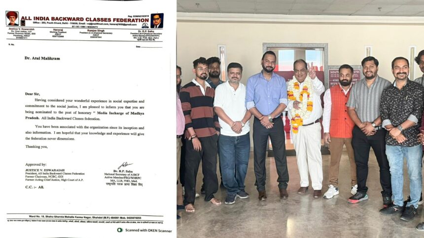 ऑल इंडिया बैकवर्ड क्लासेस फेडरेशन के मध्य प्रदेश मीडिया इंचार्ज बने राजनीतिक रणनीतिकार डॉ अतुल मलिकराम