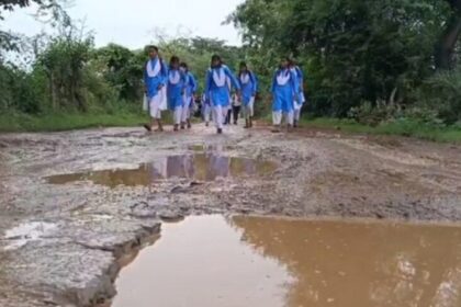 CG NEWS : गड्ढों वाली सड़क पर जान जोखिम में डालकर स्कूल जानें को मजबूर छात्र…