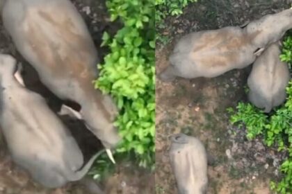 CG NEWS : 18 हाथी का झुंड नन्हें शावक का पूंछ खींचता नजर आया हाथी,ड्रोन कैमरे में कैद हुआ नाजारा…