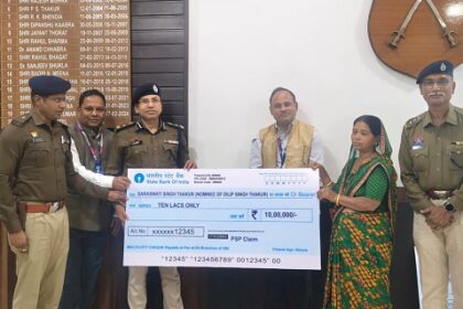 आकस्मिक निधन हुए दो पुलिसकर्मियों के परिजनों को पुलिस सैलरी पैकेज से मिला 10–10 लाख रुपये का बीमा चेक