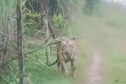 BREAKING NEWS : गन्ने की खेत से निकला बाघ, जीप में सवार लोग हुए शॉक्ड