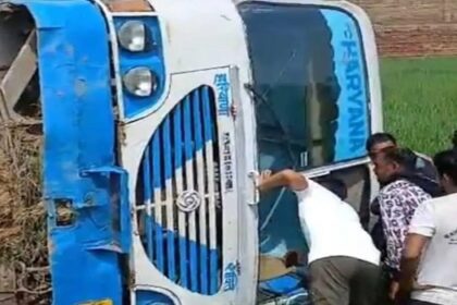 संकरी सड़क होने से रोडवेज बस खेतों में पलटी, सामने से आई कार, सवारियां गंभीर रूप से घायल
