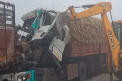 हाइवे पर 4 ट्रक, बस और कार की टक्कर में 2 की मौत, 16 घायल