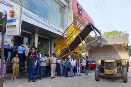 बिलासपुर में शो-रूम के बाहर खड़ी 4 गाड़ियां जब्त : बाजार में चला बुलडोजर; फ्लाईओवर के नीचे सड़क पर स्कूटी-बाइक की लगाई प्रदर्शनी