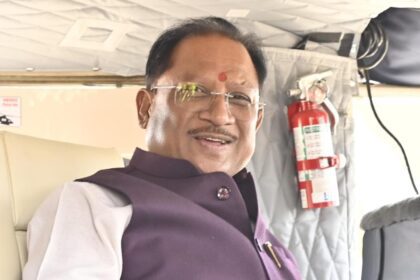 मुख्यमंत्री साय का हेलीकॉप्टर उतरा सक्ती जिले के बंदोरा गांव में
