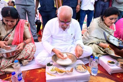 भूपेश बघेल ने अंतरराष्ट्रीय श्रमिक दिवस पर आयोजित कार्यक्रम में ली भाग..भूपेश बघेल ने भी बोरे-बासी का स्वाद लिया