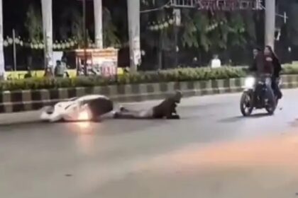 KORBA: पिकअप से गिरा तेल बना हादसों की वजह, सुभाष चौक पर कई दोपहिया वाहन चालक घायल