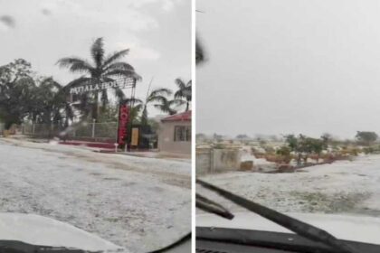CG में ओलावृष्टि : सडकों पर बारिश के साथ जमकर गिरे ओले, बिछी बर्फ की चादर