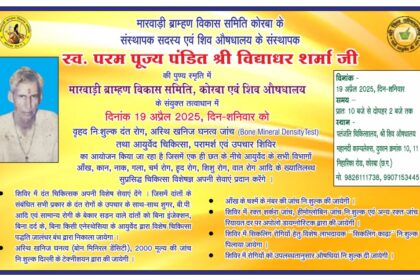 कोरबा, 16 अप्रैल (वेदांत समाचार)। मारवाड़ी ब्राह्मण विकास समिति एवं शिव औषधालय…
