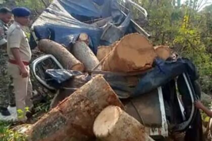 रायगढ़ में लकड़ी से भरा ट्रक पलटा,इंजन में दबने से ड्राइवर की मौत, खलासी घायल; माड़वाताल घाट के पास हुआ हादसा