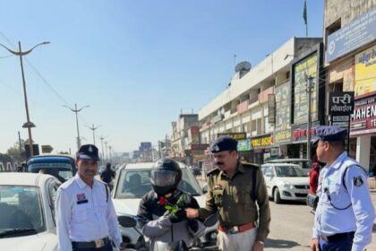 टीपी नगर चौक में सड़क सुरक्षा माह के तहत यातायात पुलिस का जागरूकता अभियान, नियमों का पालन करने वालों को गुलाब भेंट