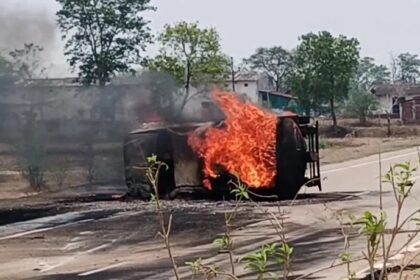 CG BREAKING : जिले के नेशनल हाईवे पर डीजल टैंकर पलटने से लगी भीषण आग, ड्राइवर और क्लीनर गंभीर रूप से घायल