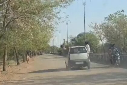 चलती कार में युवकों की स्टंटबाजी खिड़की से बाहर निकलकर करते रहे करतब, दुर्ग पासिंग गाड़ी…