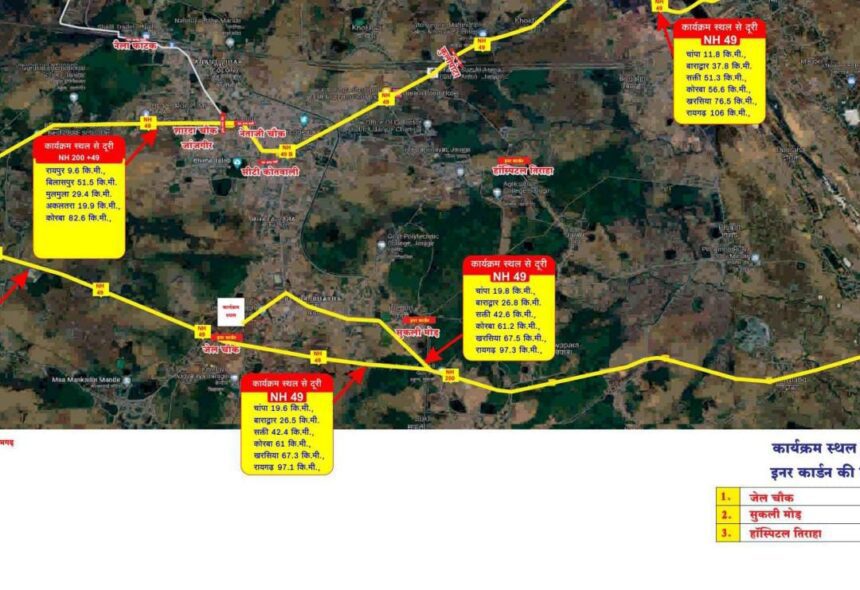 इसके साथ ही पुलिस ने यातायात दिशा संबंधी विशेष निर्देश जारी किए हैं। शक्ति, बाराद्वार एवं रायगढ़ की ओर से आने वाले वाहन सुकली चौक हाइवे से मुड़कर पेंड्री गांव होते हुए बाबा कृषि उपज मंडी, कीनाराम स्कूल, निलयम कॉलोनी एवं पॉलिटेक्निक कॉलेज के पार्किंग स्थलों में वाहन पार्क करेंगे। वहीं अकलतरा एवं बिलासपुर की ओर से आने वाले वाहन खोखरा हाइवे चौक से मुड़कर खोखरा–पामगढ़ रोड की ओर कुछ दूरी पर स्थित क्रिकेट स्टेडियम एवं आसपास के निर्धारित पार्किंग स्थलों में वाहन खड़े करेंगे।
