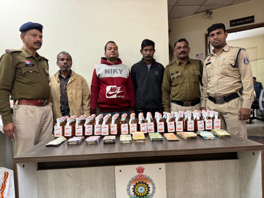 रायपुर, 21 दिसंबर 2025 (वेदांत समाचार)। रायपुर के थाना कोतवाली क्षेत्र अंतर्गत गांधी नगर में अवैध रूप से शराब बिक्री और सट्टा संचालन के खिलाफ पुलिस ने बड़ी कार्रवाई करते हुए तीन आरोपियों को गिरफ्तार किया है। यह कार्रवाई एण्टी क्राइम एंड साइबर यूनिट की 20 सदस्यीय विशेष टीम द्वारा की गई, जिसमें भारी मात्रा में अवैध शराब, सट्टा सामग्री और नकद राशि जब्त की गई है।