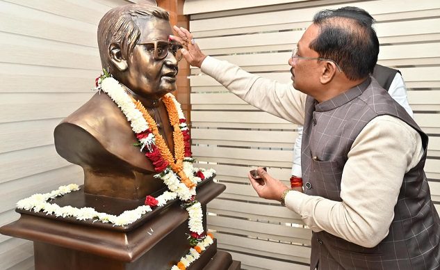 रायपुर 25 दिसंबर 2025/मुख्यमंत्री विष्णु देव साय ने आज राजधानी रायपुर स्थित मुख्यमंत्री निवास में भारत रत्न पूर्व प्रधानमंत्री श्री अटल बिहारी वाजपेयी की प्रतिमा पर माल्यार्पण कर उनकी जयंती के अवसर पर विनम्र श्रद्धांजलि अर्पित की।