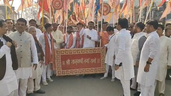 जश्न रिसोर्ट में भव्य एवं दिव्य आयोजन के शुभारंभ पूर्व् नगर के शोभायात्रा निकाली गई जो पंचदेव मंदिर,मेन रोड से प्रारम्भ हो कर जश्न रिसोर्ट पहुंचकर सम्पन्न हुई। बैंड बाजे की धुन पर जय दादी का जयकारा लगाते हुए निशान ध्वज उठाकर युवा, पुरुष-महिलाएं चलते रहे। इस यात्रा में 601 मनोकामना निशान और 151 कलश आकर्षण का केंद्र रहे।