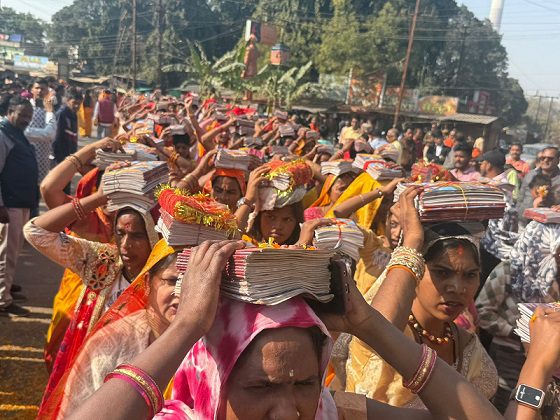 कोरबा,28 दिसंबर (वेदांत समाचार)। जिले में चल रही तीन अरब 33 करोड़ 33 लाख राम लेखन महायज्ञ की श्रृंखला के अंतर्गत गुरुवार को घंटाघर चौक से दशहरा मैदान आरपी नगर तक मातृशक्ति की विशाल एवं भव्य कौशल्या यात्रा निकाली गई। यात्रा के दौरान सुभाष चौक पर भारतीय जनता पार्टी द्वारा भव्य स्वागत कार्यक्रम आयोजित किया गया, जहां पुष्पवर्षा कर यात्रा में शामिल मातृशक्ति का अभिनंदन किया गया।
