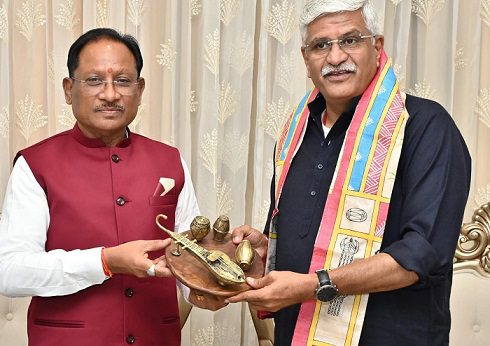 रायपुर 1 जनवरी 2025। मुख्यमंत्री विष्णु देव साय से आज नवा रायपुर, सेक्टर-24 स्थित मुख्यमंत्री निवास में केंद्रीय पर्यटन एवं संस्कृति मंत्री गजेन्द्र सिंह शेखावत ने सौजन्य भेंट की। मुलाकात के दौरान छत्तीसगढ़ में पर्यटन विकास, सांस्कृतिक धरोहरों के संरक्षण एवं सुदृढ़ीकरण से संबंधित विषयों पर सौहार्दपूर्ण एवं रचनात्मक चर्चा हुई।
