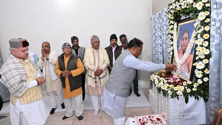 अंबिकापुर,08 जनवरी (वेदांत समाचार)। CM साय ने अंबिकापुर में स्वर्णलता सिंहदेव को पुष्पांजलि अर्पित कर श्रद्धांजलि दी। सीएम ने कहा, आज अम्बिकापुर में छत्तीसगढ़ गृह निर्माण मंडल अध्यक्ष अनुराग सिंहदेव जी के निवास पहुंचकर उनकी पूज्य माताश्री स्व. स्वर्णलता सिंहदेव जी के तैलचित्र पर पुष्पांजलि अर्पित कर भावपूर्ण श्रद्धांजलि दी। ईश्वर से प्रार्थना है कि दिवंगत पुण्यात्मा को अपने श्रीचरणों में स्थान दें और इस अपार दुख की घड़ी में परिवारजनों को धैर्य व संबल प्रदान करें। ॐ शांति !