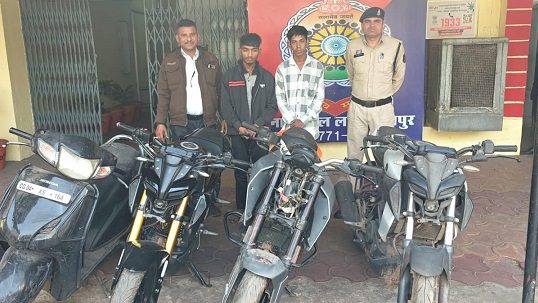 रायपुर,10 जनवरी (वेदांत समाचार) । रायपुर पुलिस ने अलग-अलग थाना क्षेत्रों से दोपहिया वाहन चोरी करने वाले दो शातिर आरोपियों को गिरफ्तार कर बड़ी सफलता हासिल की है। आरोपियों के कब्जे से चोरी की गई तीन मोटरसाइकिल और एक एक्टिवा स्कूटर बरामद की गई है, जिनकी कुल अनुमानित कीमत करीब तीन लाख रुपये बताई जा रही है। दोनों आरोपी पूर्व में भी वाहन चोरी के मामलों में जेल जा चुके हैं।