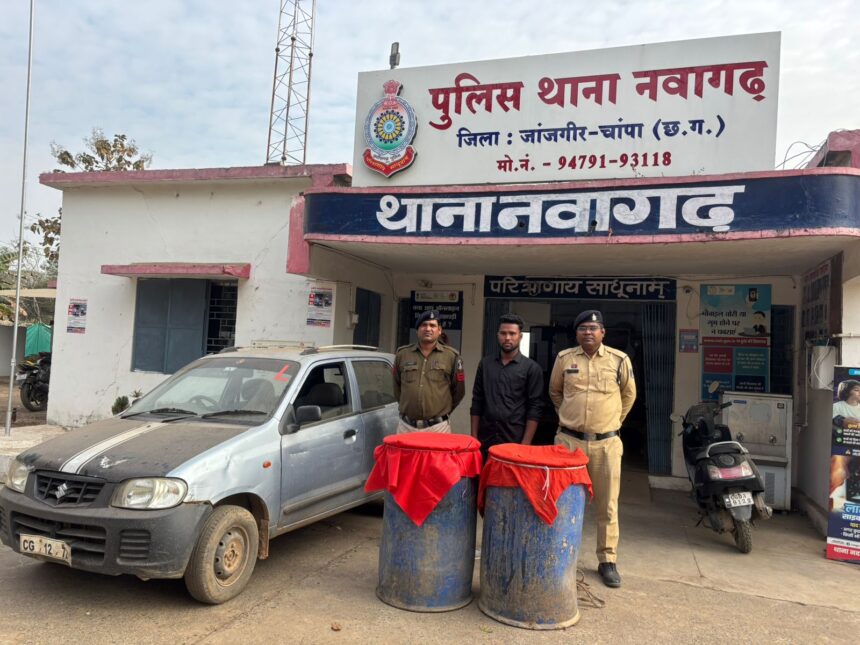 जांजगीर-चांपा, 10 जनवरी (वेदांत समाचार)। जिले में अवैध शराब के खिलाफ चलाए जा रहे अभियान के तहत थाना नवागढ़ पुलिस को बड़ी सफलता मिली है। अवैध कच्ची महुआ शराब की बिक्री के मामले में फरार चल रहे आरोपी को पुलिस ने गिरफ्तार कर लिया है। आरोपी के कब्जे से एक कार भी बरामद की गई है।