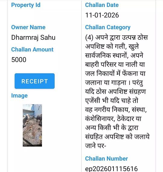 इस पर नगर निगम स्वास्थ्य अधिकारी एवं जोन कमिश्नर के निर्देशानुसार जोन स्वास्थ्य अधिकारी द्वारा महामाया डेयरी, फाफाडीह के संचालक धर्मराज साहू पर तत्काल 5,000 रुपये का ई-जुर्माना लगाया गया तथा नोटिस जारी करते हुए कड़ी चेतावनी दी गई। डेयरी संचालक ने लिखित रूप से आश्वासन दिया कि वह आगामी एक माह के भीतर आवासीय क्षेत्र में डेयरी संचालन बंद कर इसे रायपुर नगर निगम क्षेत्र से बाहर स्थानांतरित कर लेगा।