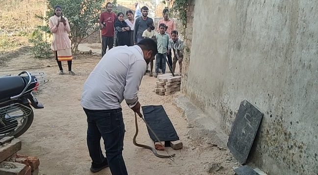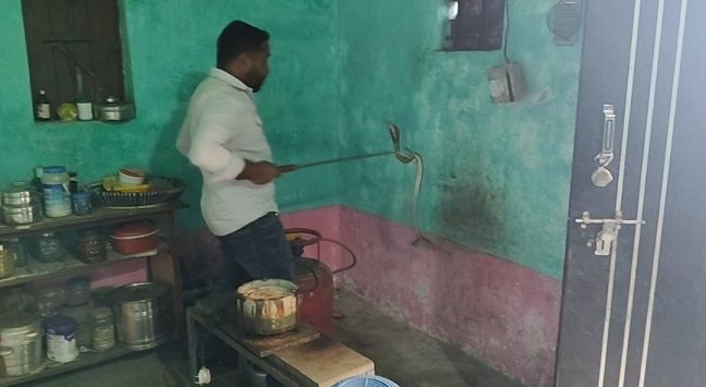 कोरबा,14 जनवरी (वेदांत समाचार) – कोरबा जिले के सिंगापुर क्षेत्र के मंगलवार दोपहर एक घर के किचन में उस समय अफरा-तफरी मच गई जब सिलेंडर के पीछे एक फन फैलाए हुए नाग को बैठा देखा गया,आवाज सुनते ही घर की महिला (अर्चना कंवर)घबरा गई और कुछ देर के लिए हक्के-बक्के रह गई, फन वाला सांप देखकर यह समझते देर नहीं लगी कि यह बेहद जहरीला नाग है, महिला ने तुरंत पड़ोसियों को बुलाया, लेकिन किसी में भी इतने खतरनाक सांप को निकालने की हिम्मत नहीं हुई, इसके बाद वाइल्डलाइफ रेस्क्यू टीम (नोवा नेचर) के जितेंद्र सारथी को सूचना दी गई, सूचना मिलते ही जितेंद्र सारथी अपने टीम के साथ मौके पर पहुंचे और पूरी सावधानी व कुशलता के साथ नाग का सुरक्षित रेस्क्यू किया,उन्होंने सांप को विशेष उपकरणों की मदद से पकड़कर थैले में सुरक्षित रखा, जिससे घर के सभी सदस्यों ने राहत की सांस ली, रेस्क्यू के बाद नाग को उसके प्राकृतिक आवास में सुरक्षित छोड़ दिया गया।