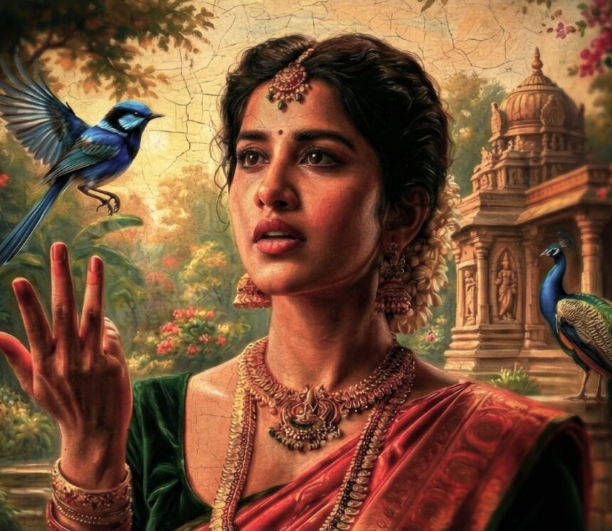 पोस्टर में नभा नतेश पारंपरिक भारतीय साड़ी में बेहद ग्रेसफुल, शांत और दिव्य नज़र आ रही हैं। उनका लुक न सिर्फ सौंदर्य का प्रतीक है, बल्कि उस आस्था और आत्मिक शक्ति को भी दर्शाता है, जो पार्वती के चरित्र का मूल भाव है। उनकी उंगली पर बैठा एक खूबसूरत पक्षी पोस्टर में एक रहस्यमय संकेत जोड़ता है, जबकि बैकग्राउंड में दिखाई देता मंदिर, मोर और आध्यात्मिक वातावरण—जो फिल्म की जड़ों को भारतीय संस्कृति और विरासत से जोड़ता है।
