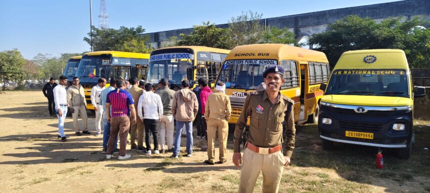 बिलासपुर, 18 जनवरी (वेदांत समाचार)। राष्ट्रीय सड़क सुरक्षा माह 2026 के तहत यातायात पुलिस बिलासपुर एवं परिवहन विभाग द्वारा संयुक्त रूप से जिले की स्कूल बसों का व्यापक मैकेनिकल मुलाइजा एवं स्वास्थ्य परीक्षण अभियान चलाया गया। यह जांच रविवार को बहतराई स्टेडियम, बिलासपुर परिसर में आयोजित की गई, जिसमें जिले की कुल 233 स्कूल बसों की तकनीकी एवं सुरक्षा मानकों के आधार पर जांच की गई।