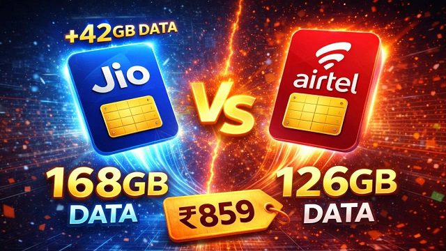 डुअल सिम फोन चलाने वाले बहुत से लोग दो अलग-अलग कंपनियों की सिम इस्तेमाल करते हैं, अगर आप भी Reliance Jio और Airtel कंपनी की प्रीपेड सिम चलाते हैं तो आपको अगली बार रिचार्ज से पहले इस बात की सही जानकारी होनी चाहिए कि आखिर 859 रुपए में कौन सी कंपनी आप लोगों को ज्यादा डेटा और ज्यादा एडिशनल बेनिफिट्स ऑफर करेगी. हम आपकी सुविधा के लिए आज एयरटेल और जियो कंपनी के 859 रुपए वाले प्लान की तुलना करने वाले हैं.