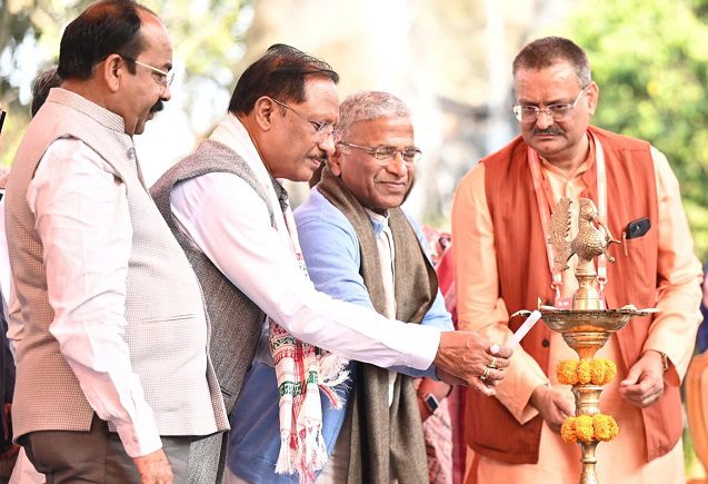 रायपुर ,23 जनवरी (वेदांत समाचार)/राजधानी रायपुर के नवा रायपुर स्थित पुरखौती मुक्तांगन परिसर में आज रायपुर साहित्य उत्सव 2026 का भव्य शुभारंभ हुआ। उद्घाटन समारोह राज्यसभा के उप सभापति हरिवंश के मुख्य आतिथ्य और मुख्यमंत्री विष्णु देव साय की अध्यक्षता में संपन्न हुआ। समारोह का आयोजन विनोद कुमार शुक्ल मंडप में किया गया, जिसमें उपमुख्यमंत्री अरुण साव, महात्मा गांधी अंतरराष्ट्रीय हिंदी विश्वविद्यालय वर्धा की कुलपति डॉ. कुमुद शर्मा तथा सुप्रसिद्ध रंगकर्मी एवं अभिनेता मनोज जोशी विशिष्ट अतिथि के रूप में उपस्थित थे। इस अवसर पर मुख्यमंत्री के मीडिया सलाहकार पंकज झा, वरिष्ठ पत्रकार अनंत विजय तथा छत्तीसगढ़ साहित्य अकादमी के अध्यक्ष शशांक शर्मा सहित अनेक गणमान्य नागरिक उपस्थित थे।