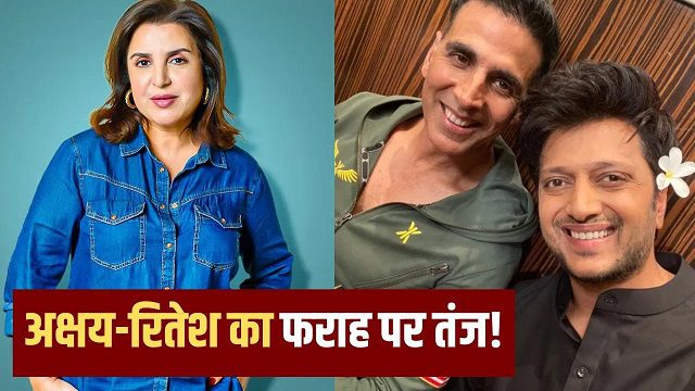 अक्षय कुमार के नए शो ‘व्हील ऑफ फॉर्च्यून’ के एक एपिसोड में मशहूर एक्टर रितेश देशमुख और फिल्ममेकर साजिद खान भी पहुंचेंगे. इस दौरान अक्षय और रितेश मिलकर साजिद की बहन और डायरेक्टर-कोरियोग्राफर फराह खान का मजाक उड़ाते हुए दिखाई देंगे. इसका एक प्रोमो वीडियो काफी वायरल हो रहा है. अक्षय और रितेश द्वारा अपना मजाक उड़ाए जाने पर अब फराह खान ने भी प्रतिक्रिया दी है.