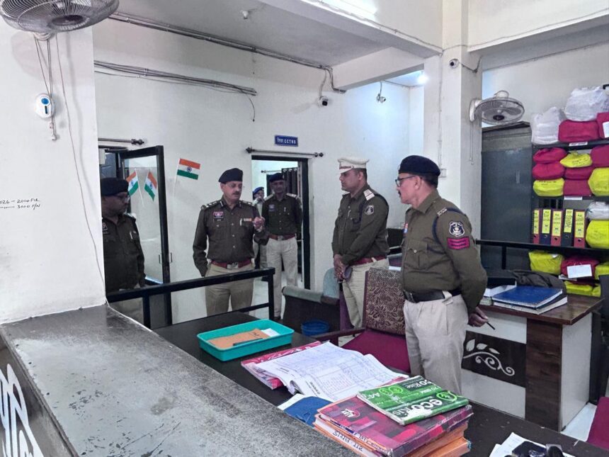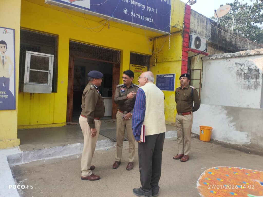 बिलासपुर, 27 जनवरी 2026। पुलिस महानिरीक्षक रामगोपाल गर्ग ने आज जिले के सरकंडा एवं कोनी थाना सहित वरिष्ठ पुलिस अधीक्षक कार्यालय का औचक निरीक्षण किया। इस दौरान वरिष्ठ पुलिस अधीक्षक बिलासपुर रजनेश सिंह भी उनके साथ उपस्थित रहे।निरीक्षण के दौरान पुलिस महानिरीक्षक ने थानों की साफ-सफाई, पुलिस अधिकारियों के अनुशासन, वेशभूषा तथा थाना भवन की समग्र व्यवस्था का गहन अवलोकन किया। उन्होंने थाने के रिकॉर्ड एवं रजिस्टरों की जांच की और कार्यप्रणाली की समीक्षा की। इस अवसर पर पुलिस महानिरीक्षक ने थानों में आने वाले पीड़ितों से स्वयं संवाद कर उनकी समस्याएं सुनीं तथा संबंधित थाना प्रभारियों को त्वरित और वैधानिक निराकरण के निर्देश दिए।