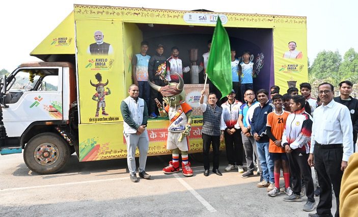जांजगीर-चांपा,28 जनवरी (वेदांत समाचार)। खेलो इंडिया ट्राइबल गेम्स के व्यापक प्रचार-प्रसार एवं जनजागरूकता के उद्देश्य से निकाली गई मशाल गौरव यात्रा रथ खेलो इंडिया ट्राइबल गेम्स के शुभंकर ‘मोर वीर’ के साथ आज जांजगीर-चांपा जिले के शासकीय हाई स्कूल मैदान जांजगीर में पहुंची जहां भव्य स्वागत के बाद कलेक्टोरेट परिसर जांजगीर से कलेक्टर जन्मेजय महोबे ने मशाल गौरव यात्रा रथ को हरी झंडी दिखाकर आगे के लिए रवाना किया।