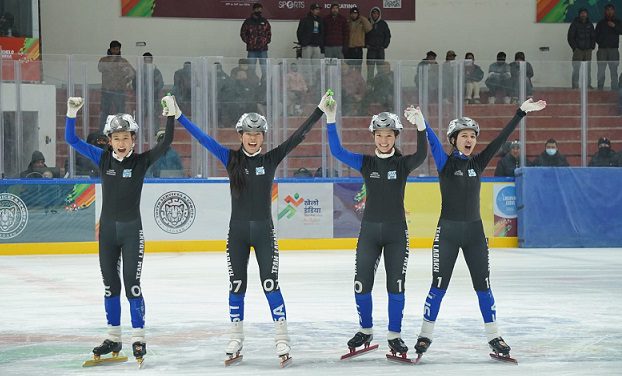 एनडीएस स्टेडियम में 2000 मीटर शॉर्ट ट्रैक रिले जीतने के साथ ही लद्दाख पदक तालिका में दूसरे स्थान पर पहुँच गया। स्कर्मा त्सुल्तिम, शबाना ज़ारा, तस्निया शमीम और इंशा फातिमा की लद्दाख चौकड़ी कर्नाटक और महाराष्ट्र की टीमों पर स्पष्ट रूप से भारी पड़ी, जो फाइनल के लिए क्वालिफाई करने वाली अन्य दो टीमें थीं। कई गिरावटों और टक्करों से भरी इस रोमांचक रेस में लद्दाख की स्केटर्स भी गिरीं, लेकिन उन्होंने शानदार वापसी करते हुए स्वर्ण पदक अपने नाम किया।