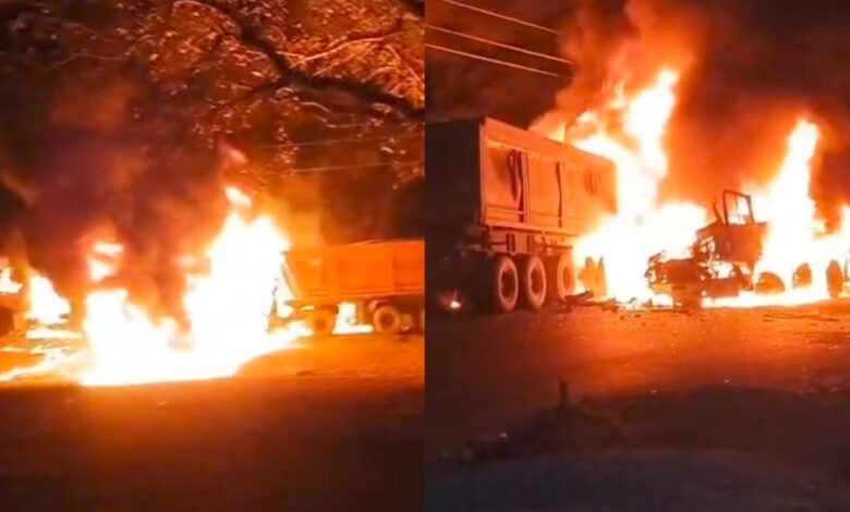 प्रत्यक्षदर्शियों के अनुसार तीनों ट्रेलर तेज रफ्तार में थे। अचानक हुए इस हादसे के बाद ट्रेलरों के अगले हिस्से बुरी तरह क्षतिग्रस्त हो गए। टक्कर के तुरंत बाद ट्रेलरों में आग लग गई, जिससे मौके पर अफरा-तफरी मच गई। आग की लपटें और धुएं का गुबार दूर से ही दिखाई देने लगा।
