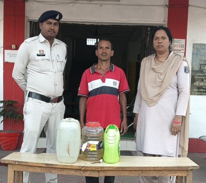 आरोपी के कब्जे से 20 लीटर कच्ची महुआ शराब, जिसकी अनुमानित कीमत लगभग 2000 रुपये है, बरामद की गई।