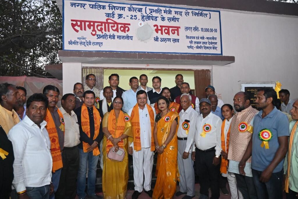 0.मुड़ापार हेलीपेड में नवनिर्मित सामुदायिक भवन का कैबिनेट मंत्री और महापौर ने फीता काटकर किया लोकार्पण