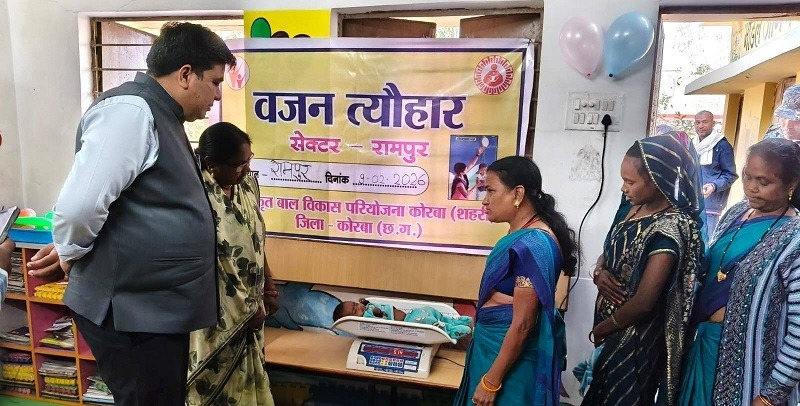कोरबा,09 फरवरी(वेदांत समाचार)। शासन के निर्देशानुसार वजन त्यौहार 2026 का शुभारंभ आज आंगनबाड़ी केन्द्र रामपुर-1, सेक्टर रामपुर, कोरबा (शहरी) में कलेक्टर कुणाल दुदावत द्वारा किया गया। कार्यक्रम में जिला कार्यक्रम अधिकारी (DPO) बसंत मिंज, वार्ड पार्षद श्रीमती ममता यादव तथा परियोजना अधिकारी मनोज अग्रवाल उपस्थित रहे।