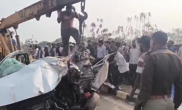 जानकारी के मुताबिक घटना अर्जुनी थाना क्षेत्र की है,जहां आज सुबह खपरी बाईपास के पास नेशनल हाइवे 30 में जगदलपुर से रायपुर की तरफ जा रही एमपी पासिंग स्विफ्ट डिजायर कार क्रमांक MP 17 ZH 4897 की ट्रक से टक्कर हो गई,इस हादसे में 201 कोबरा बटालियन के तीन जवान और चालक की मौत हो गई जबकि एक की हालत गंभीर बताई जा रही है। बताया जा रहा है कि टक्कर इतनी जोरदार थी की कार पूरी तरह से क्षतिग्रस्त हो गई,और मृतकों के शव कार में फस गया, जिससे निकालने के लिए पुलिस की टीम को काफी मशक्कत करनी पड़ी और आखिरकार गैस कटर की मदद शवों को बाहर निकाला गया,फिलहाल पुलिस मामले की जांच शुरू कर आगे की कार्रवाई कर रही है।