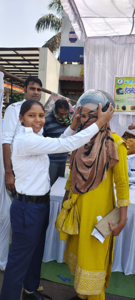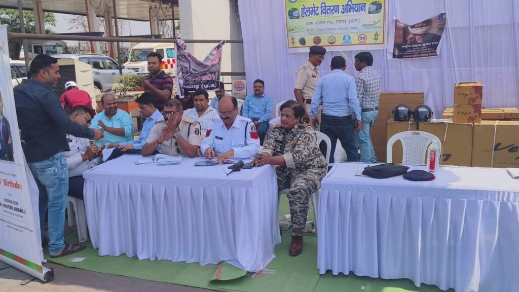 इसी कड़ी में जिंदल फाउंडेशन के विशेष सहयोग से उपलब्ध कराए गए हेलमेट के वितरण हेतु छातामुड़ा चौंक पर विशेष कार्यक्रम आयोजित किया गया था , जिसमें डीएसपी ट्रैफिक उत्तम प्रताप सिंह, जिंदल के संजीव चौहान, हेमंत वर्मा एवं यातायात पुलिस और जिंदल फाउंडेशन के सदस्यगण उपस्थित होकर हेलमेट का वितरण किया गया । डीएसपी ट्रैफिक ने बताया कि सड़क दुर्घटनाओं में कमी लाने के लिए शहर के प्रमुख चौक-चौराहों और हाईवे पर नियमित रूप से वाहनों की जांच और कार्यवाही की जा रही है। उन्होंने कहा कि रायगढ़ पुलिस बिना हेलमेट वाहन चालकों को जागरूक करने और निशुल्क हेलमेट उपलब्ध कराने की मुहिम चला रही है, जिसमें स्थानीय उद्योगों और एनजीओ का भी सहयोग मिल रहा है।