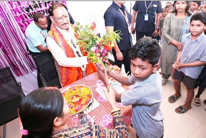 आश्रम के बच्चे मुख्यमंत्री को अपने बीच पाकर अत्यंत उत्साहित और प्रसन्न नजर आए। वे उत्साहपूर्वक उनके चारों ओर एकत्र हो गए और उनसे बातचीत करने लगे।मुख्यमंत्री ने बच्चों से स्नेहपूर्वक संवाद किया और उनका हालचाल जाना। उनके सहज, सरल और संवेदनशील व्यवहार से बच्चे भावविभोर हो उठे और खुशी से चहकते हुए उनसे बातें करते रहे। मुख्यमंत्री ने बच्चों को अपने हाथों से केक और चॉकलेट वितरित कर उन्हें जन्मदिवस की खुशी में सहभागी बनाया। बालक आश्रम बगिया में कक्षा पहली से पाँचवीं तक के छात्र अध्ययनरत हैं, जिनमें अधिकांश बच्चे आदिवासी समुदाय से हैं।