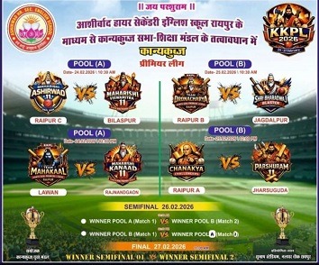 रायपुर ,24फरवरी (वेदांत समाचार)। छत्तीसगढ़ की राजधानी रायपुर में प्रदेश स्तरीय ‘‘कान्यकुब्ज प्रीमियर लीग-2026’’ का भव्य शुभारंभ मंगलवार को हुआ। बैरन बाजार स्थित आशीर्वाद हायर सेकेंडरी इंग्लिश स्कूल के माध्यम से कान्यकुब्ज सभा-शिक्षा मंडल के तत्वावधान में कान्यकुब्ज युवा मंडल द्वारा इस क्रिकेट प्रतियोगिता का आयोजन किया जा रहा है। यह लीग 27 फरवरी तक सुभाष स्टेडियम, नलघर चौक, रायपुर में आयोजित होगी।
